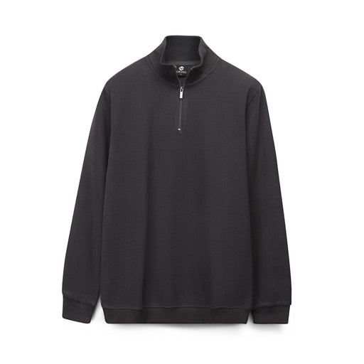 View full detailsDescription:This is a men’s long-sleeve pullover with a textured abstract pattern in black and grey. It features a stand-up collar with a short, bu...
