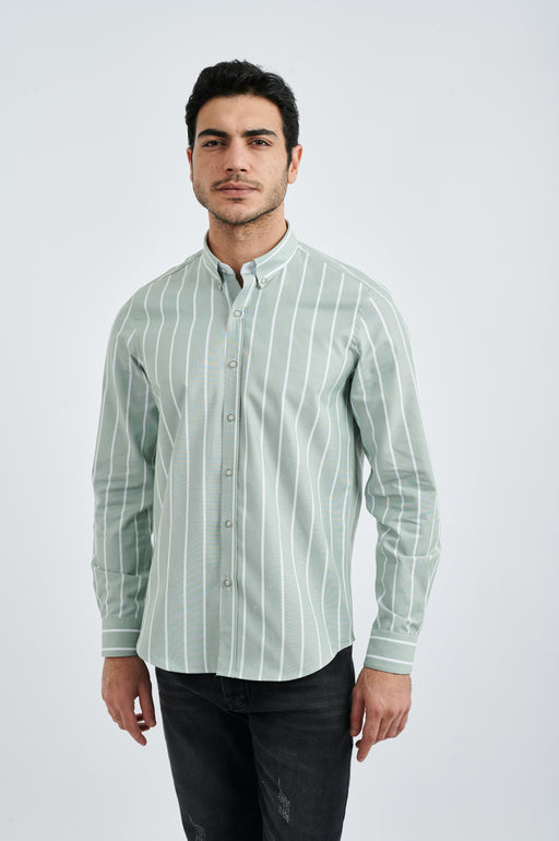View full detailsDescription:A sophisticated men's dress shirt crafted from premium cotton or cotton-blend fabric, featuring a refined sage green base accented by c...