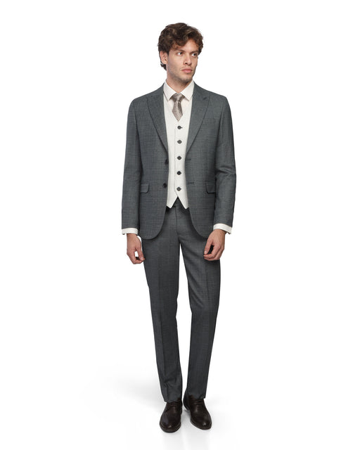 View full detailsDescriptionThis is a stylish three-piece slim fit suit featuring a modern grey check pattern. It includes a tailored blazer, matching trousers, des...