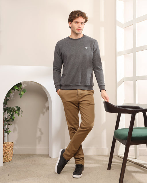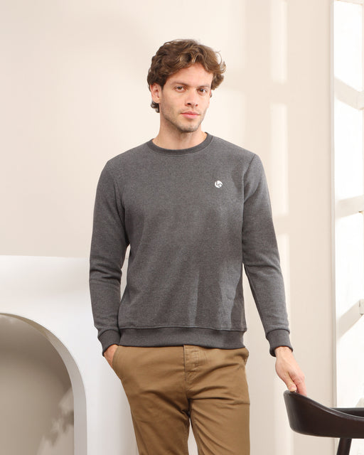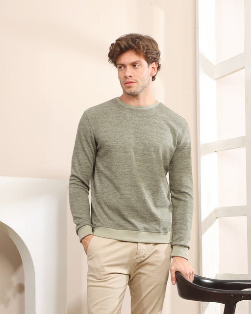 View full detailsDescription:Men's long-sleeve crew neck sweatshirt/jumper. subtle, textured, heathered (marled) finish. Crew neckline, long sleeves, and ribbed cuf...