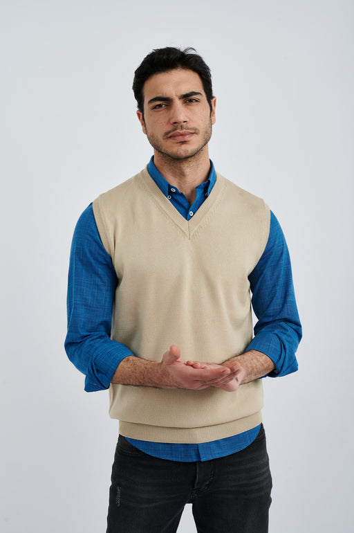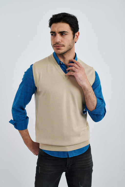 Description:This timeless sleeveless knit vest showcases a refined V-neck silhouette with understated elegance. Designed for versatility, it layers...