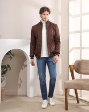 Description: This is a men’s quilted bomber jacket designed for casual and smart-casual wear. It features a diamond-stitched pattern that adds texture and style, along with a soft, suede-like finish for a "Waterproof" premium look. The jacket has a ribbed collar, cuffs, and hem for a comfortable fit, and a front zipper closure for easy layering. versatile and suitable for pairing with a variety of outfits. Features: • Made with waterproof material to protect you from rain and moisture. • Quilted design for added warmth and stylish appearance. • Soft, suede-like texture that feels comfortable and looks premium. • Full front zipper for easy wearing and temperature control. • Ribbed collar, cuffs, and hem for a secure and comfortable fit. • Lightweight insulation to keep you warm without feeling heavy.